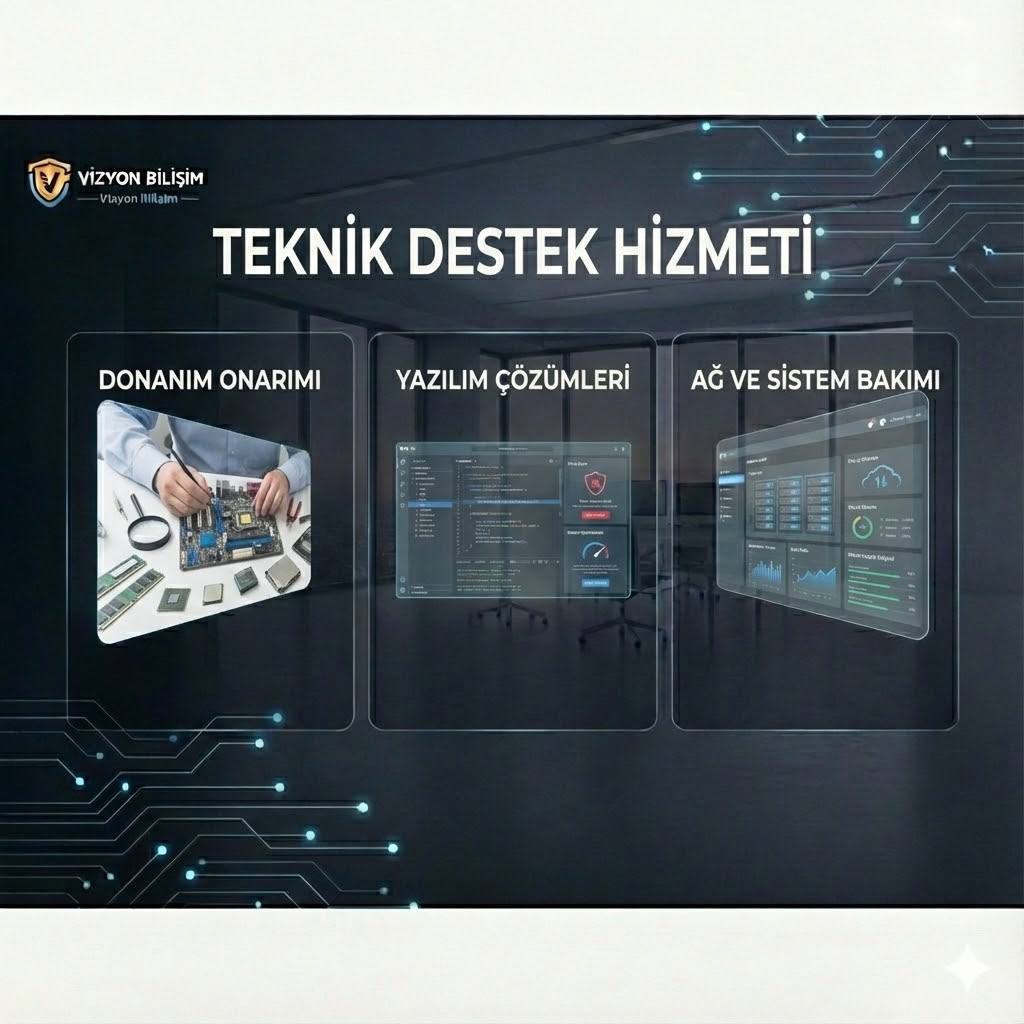 Profesyonel teknik ekipler tarafından sunulan bilgisayar tamir ve teknik servis hizmetlerimiz ile cihazlarınızın tüm donanım ve yazılım sorunlarını güvenle çözüyoruz. Arıza tespiti, bakım, parça değişimi, format, hızlandırma ve kurulum işlemlerinde hızlı, güvenilir ve garanti kapsamlı çözümler üretiyoruz.